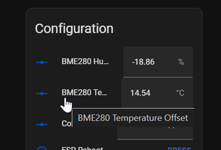 "Note: The ESP32-C3 in constant WiFi connection generates significant heat; you might need to adjust the offset based on your setup and the temperature/humidity won't be as good as a dedicated sensor with less heat build-up."