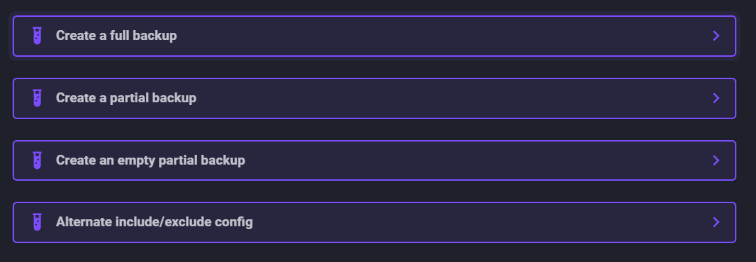 You would then choose either a partial or full backup. Choosing full backup in my case results in several fields that allow you to set the backup exactly the way you want it.