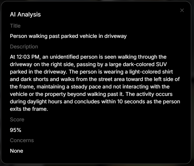 The mere presence of an unidentified person in private areas during late night hours is inherently suspicious and warrants human review, regardless of what activity they appear to be doing or how brief the sequence is.I was using the free tier of Google Gemini but, coincidentally around the same time, they limited the free tier to such a low limit that it became unusable for the purpose of review summaries. At first I thought it was a configuration issue on my end but then realized, based on comments from others, that the model limits were the issue.