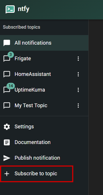 As I said before, ntfy is a one-stop shop for all your notifications and you can subscribe to as many topics as you want (up to system limits). For frigate-notify, I will subscribe to a topic and call it Frigate. There is mention in the docs of using obscure names to make it harder to guess. YMMV.