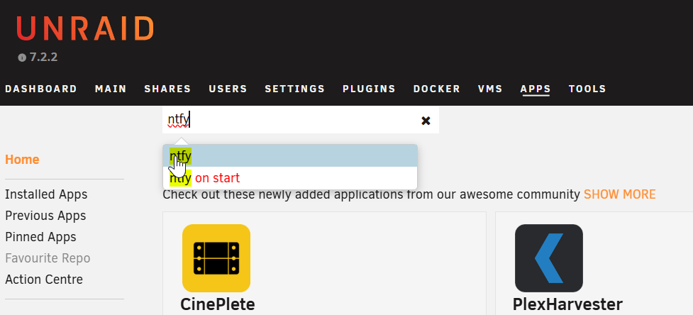 While there are options to use cloud based ntfy for a price, I chose the self-hosted option to follow my theme of keeping local as much as possible. To do this, I installed ntfy from the UNRAID Apps page. I feel I cheated a bit here for the sake of time and because I have the means to do it this way. There are many different ways to install so just choose the method that is best for you.