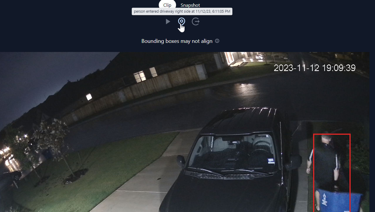 - Timeline metadata is now stored for specific moments during an event. It is now possible to highlight when an object is detected, enters or leaves a zone, or becomes stationary. This is done by simply clicking icons above a recording. This makes it very easy to tell what triggered an event and what an object was doing during that event. There is a new setting called 'annotation_offset' that allows adjustment of the overlay to match the actual object detection.