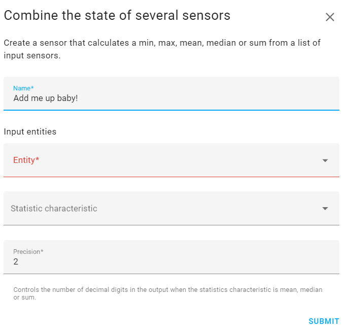 You know how you have to build templates and mess with yaml in order to sum up different entities? Well not anymore. There is now a new helper called "Combine the state of several sensors". With this, you can sum the value of two or entities into a whole new entity. It's super simple to do now!