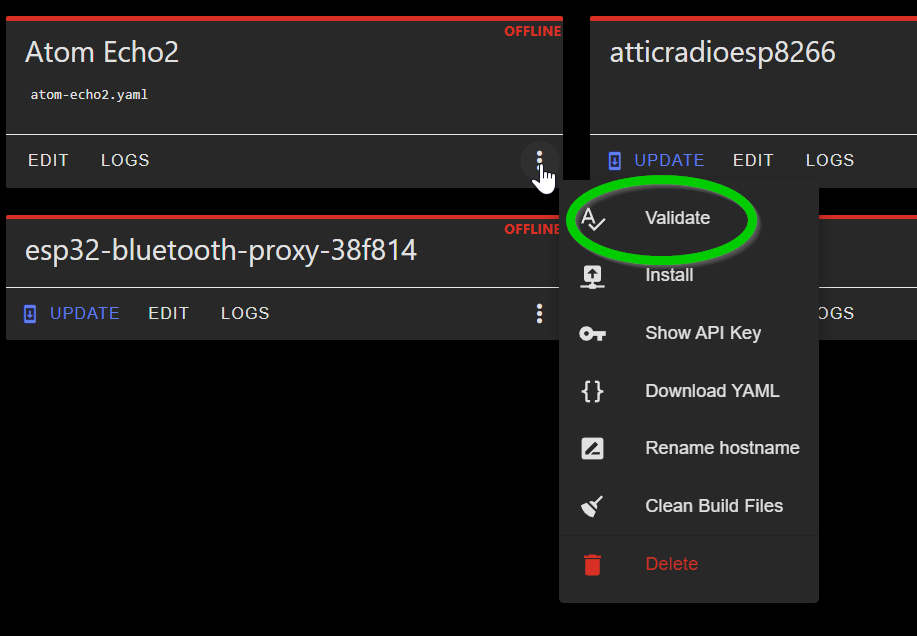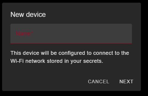 Once done, you will have a new device listed in your ESPHome dashboard with the name you gave it.