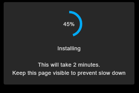 The installation process will take a few minutes. Sit back and relax or go take a break, refill that coffee or other beverage, etc.