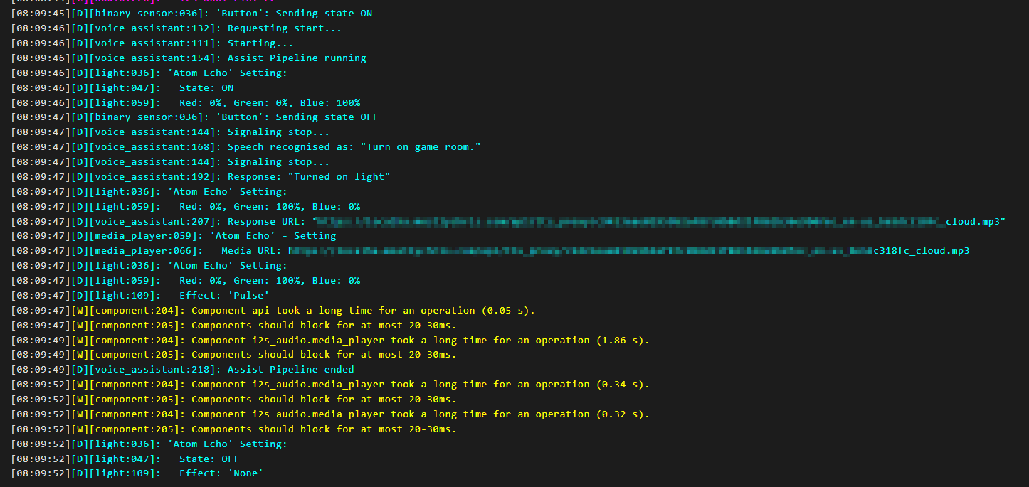 Once it is configured in Home Assistant, try it out by giving in a command that is available to you via the Assist pipeline. If it isn't working, you can go back to the logs in the ESPhome UI for the device and see what is happening.