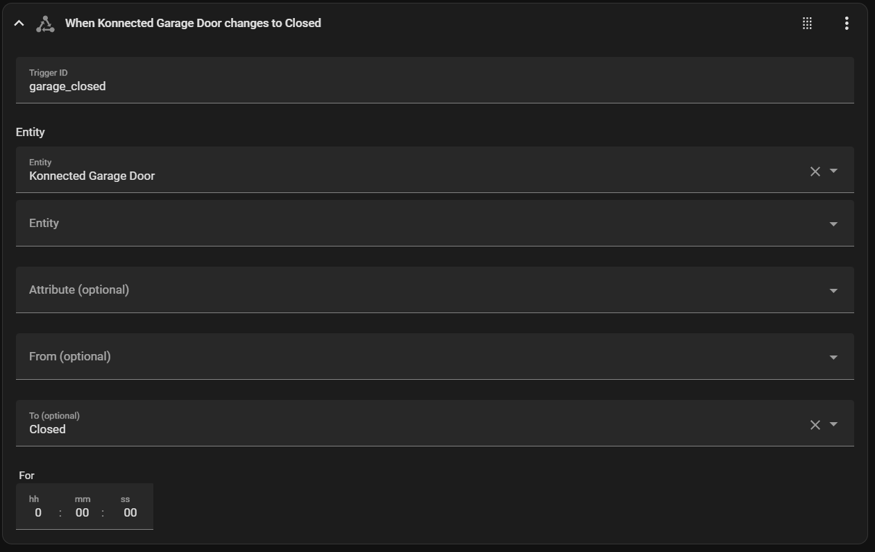 First, we need to add two triggers, one for the garage door open and one for closed. Give each one a unique Trigger ID.