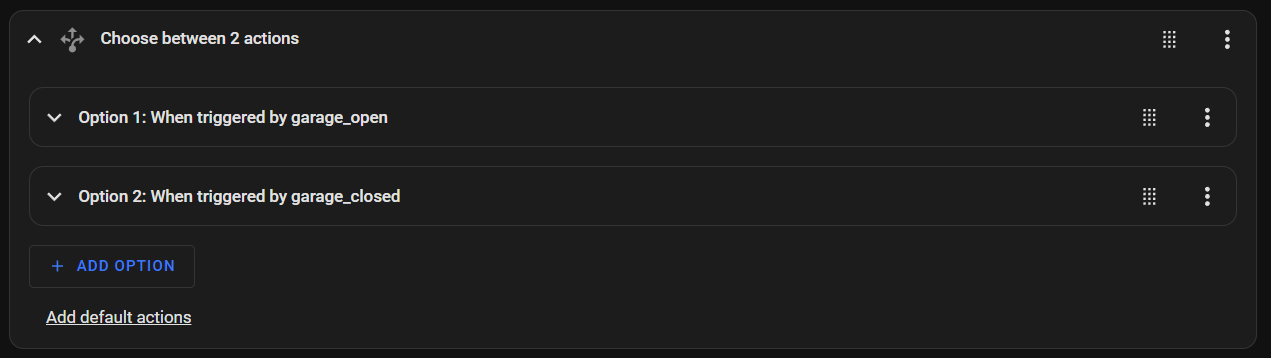 Next, I determine whether the garage door is open or closed using a "Choose" building block.