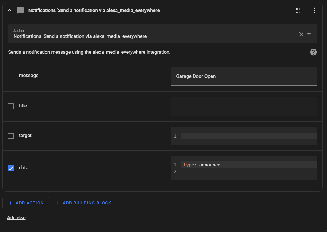 - Send a voice announcement via Alexa smart speakers ONLY between 8 am and 9 pm.