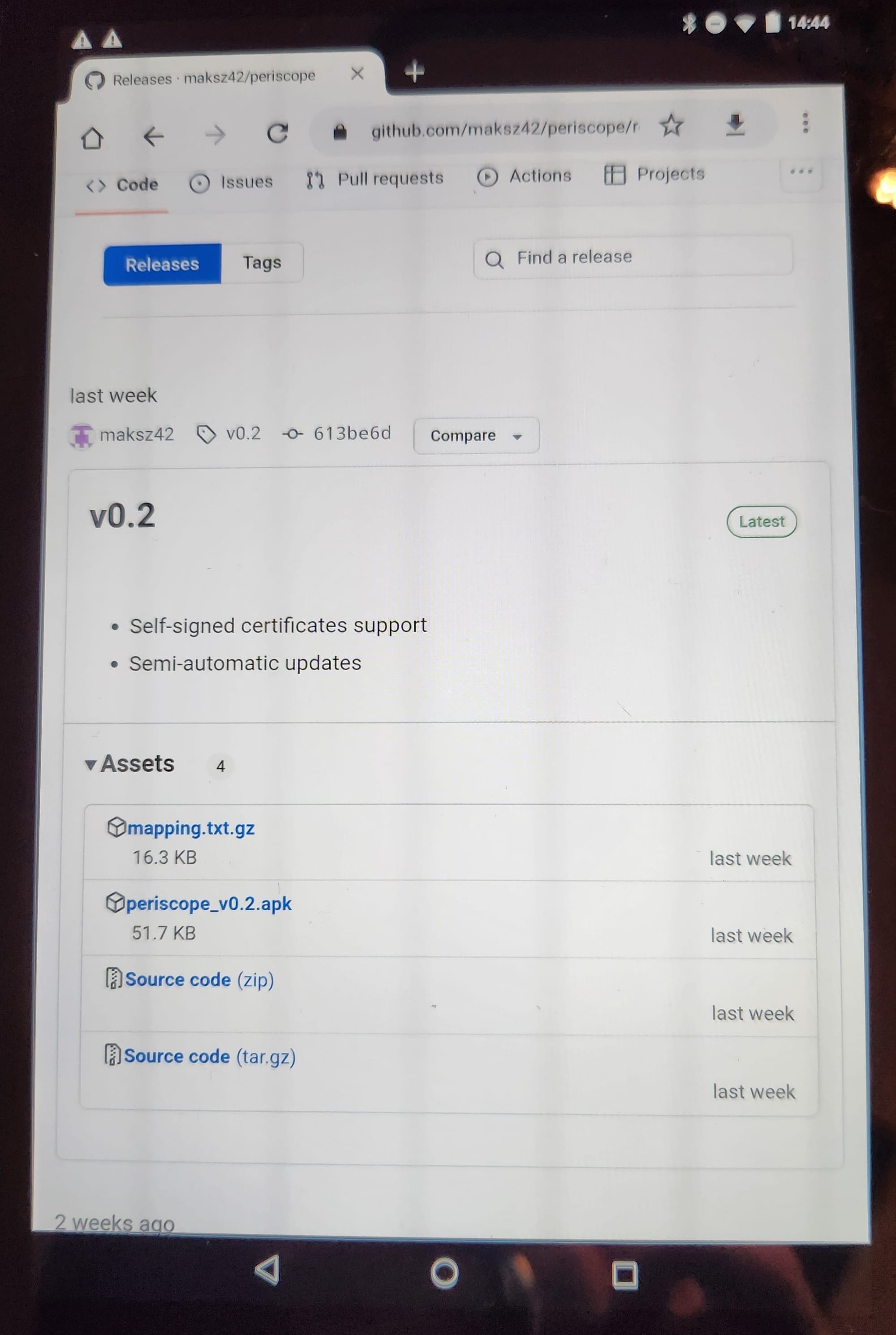 Installing is super simple. Go to the releases page on the GitHub project in your device's browser and download the .apk file. As of this writing, v0.2 is the latest.