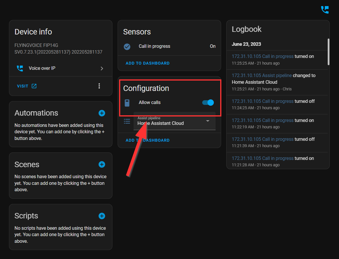 On this same page, you can also choose the Assist pipeline that you want to use with this device. However, before doing this, you will need to configure the Voice Assistants.
