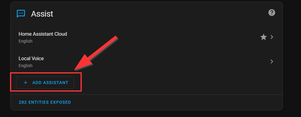 Navigate to Settings->Voice Assistants. On that page, select + ADD ASSISTANT.