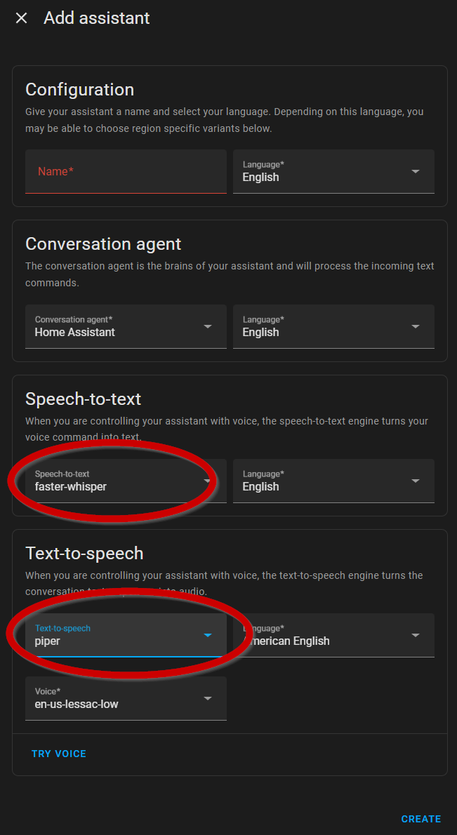 If you want to use Piper and Whisper that I mentioned earlier in this article, you would select those in this dialogue. Remember to give it a meaningful name so that you can find it later.