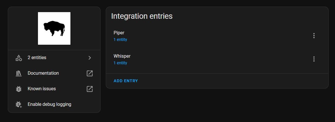 One final piece here. The "glue" that holds everything together is called "Wyoming". When you install Piper and Whisper as add-ons in Home Assistant, you will see that Home Assistant automatically detects these and asks if you want to set them up. This will show in the integrations page. Once you confirm the setup, you will have these entities show up under Wyoming.