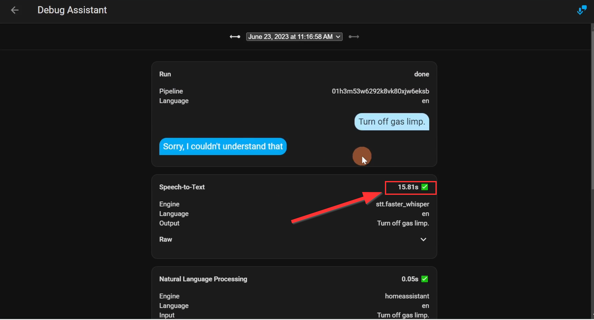 Whisper is an open-source speech-to-text model created by OpenAI. Home Assistant uses a variation of that called "faster-whisper". Processing speech-to-text is more resource intensive. For example, on a Pi 4, it can take upwards of 7 seconds to process a command while using 200 MB of RAM. An Intel Core i5 on the other hand can process the same command in less than a second. There are different models of Whisper. The bigger the model, the more accurate it is, but also more resource intensive. In my testing on the Odroid, I was seeing up to 15 seconds+ of processing time.