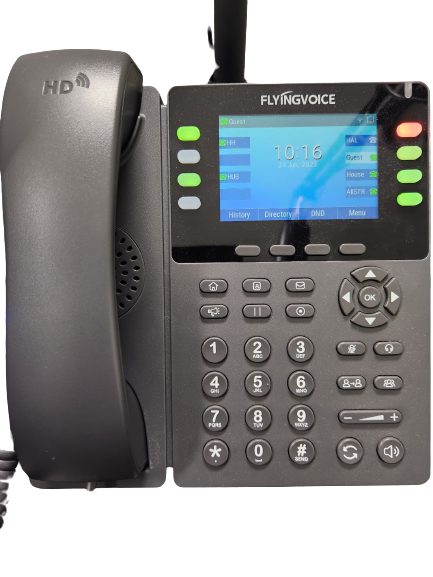Let's get onto the phone itself. I am using a Flyingvoice FIP14G VOIP phone. It is an 8-line phone and is connected to my home PBX, 2 Allstar nodes, and "Hamshack Hotline". It is also now connected to Home Assistant.